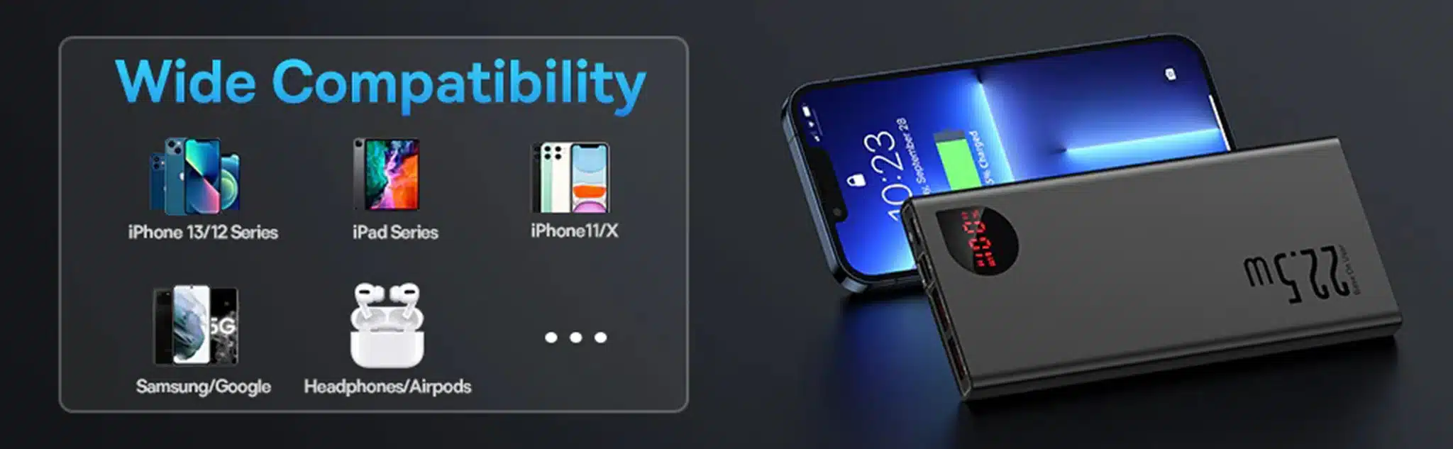 - 22.5W Fast Charging: Provides rapid charging for your devices, minimizing downtime and keeping you connected.