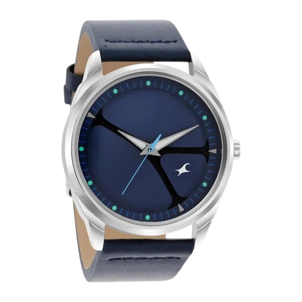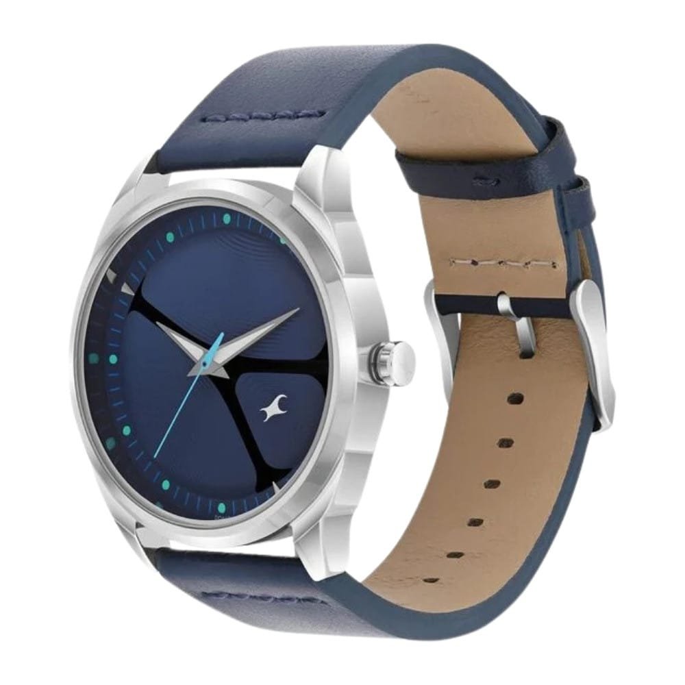 Fastrack MetaWe Quartz Analog Blue Dial Leather Strap Watch For Guys 3273SL03