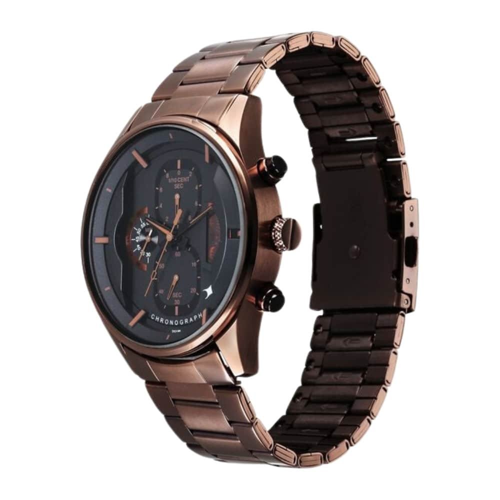 Fastrack Opulence Sun Moon Chronograph Black Dial Brown Metal Strap Analog Quartz Watch For Guys 3315KM02