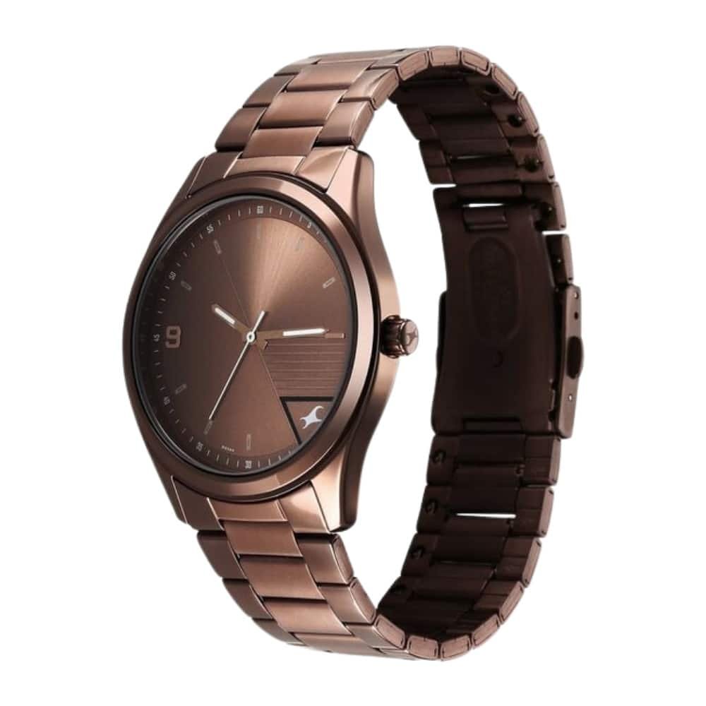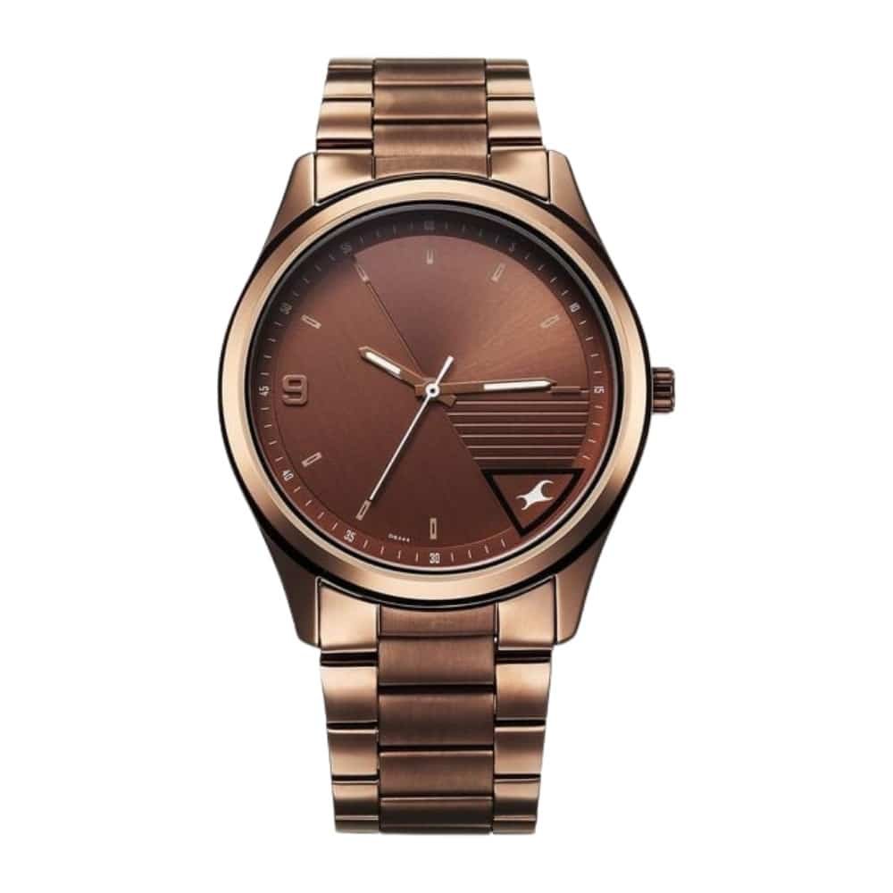 Fastrack Stunners Quartz Analog Brown Dial Brown Metal Strap Watch For Guys 3317QM02