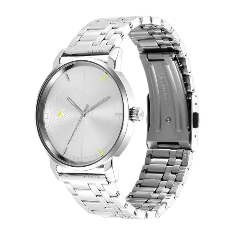 Fastrack Stunners Quartz Analog Silver Dial Metal Strap Watch for Guys 3278SM02