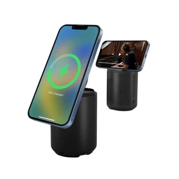 - 【3 in 1 Portable Wireless Speaker】: The perfect combination of wireless Bluetooth speaker, magnetic charger, and phone stand, not just a speaker player, explore more possibilities.