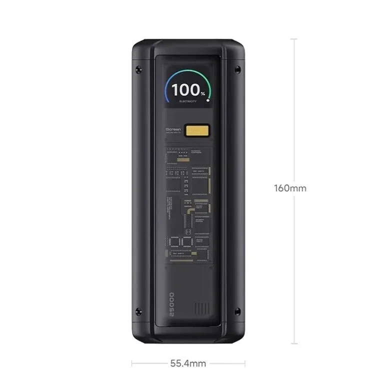 The 25,000mAh battery equals the power of five 5,000mAh batteries. It delivers reliable energy for long trips or heavy daily use.Xiaomi 25000mAh 212W HyperCharge Power BankFuturistic Design