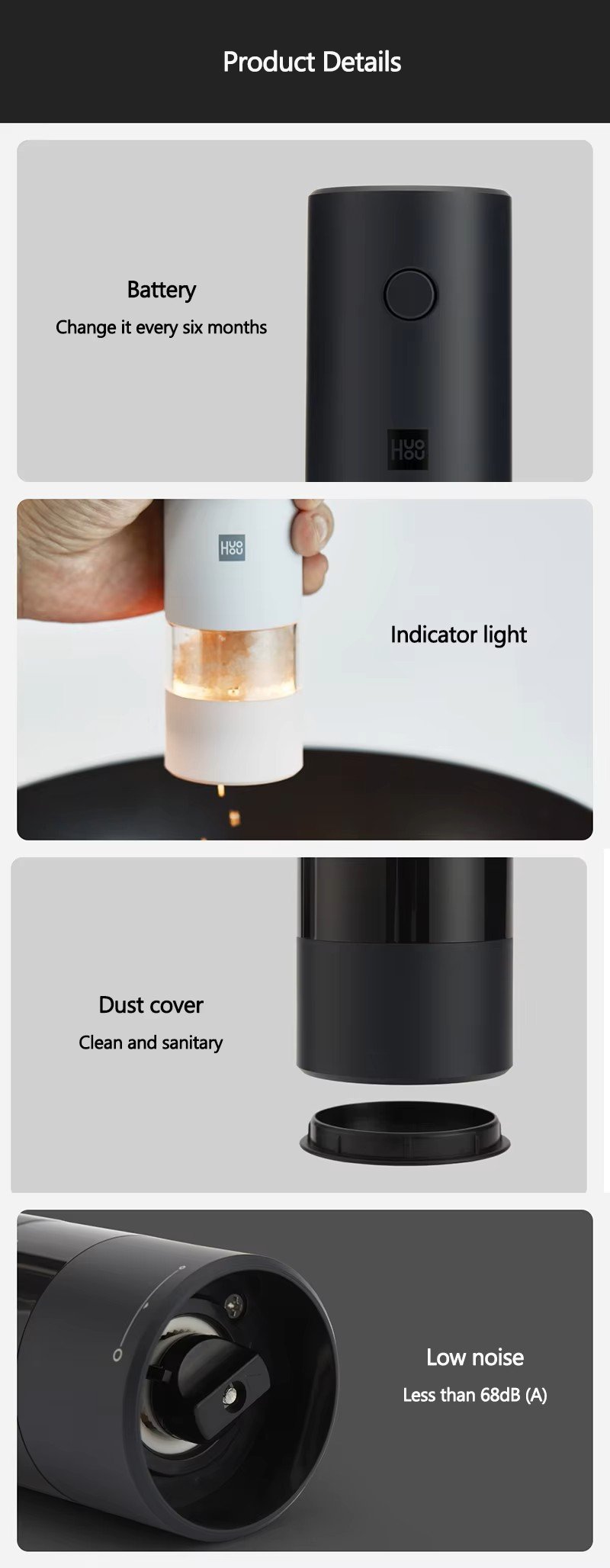 Xiaomi Huohou Electric Automatic Mill Pepper And Salt Grinder For Cooking
